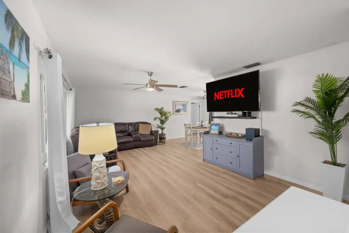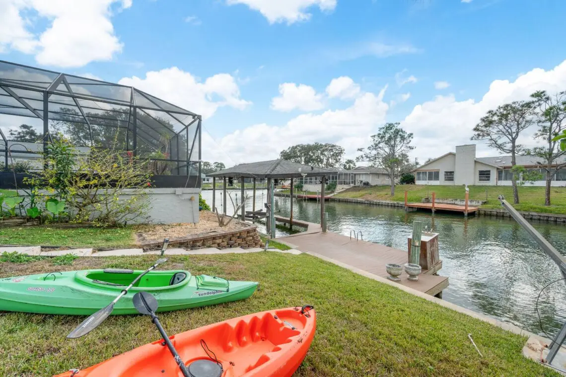 The dock is still usable for general access; however, it is warped at this time, and the boat slip is not functional. Guests may still enjoy the canal-front setting, kayaking, and water views, but boat docking at the slip is unavailable until repairs are completed.