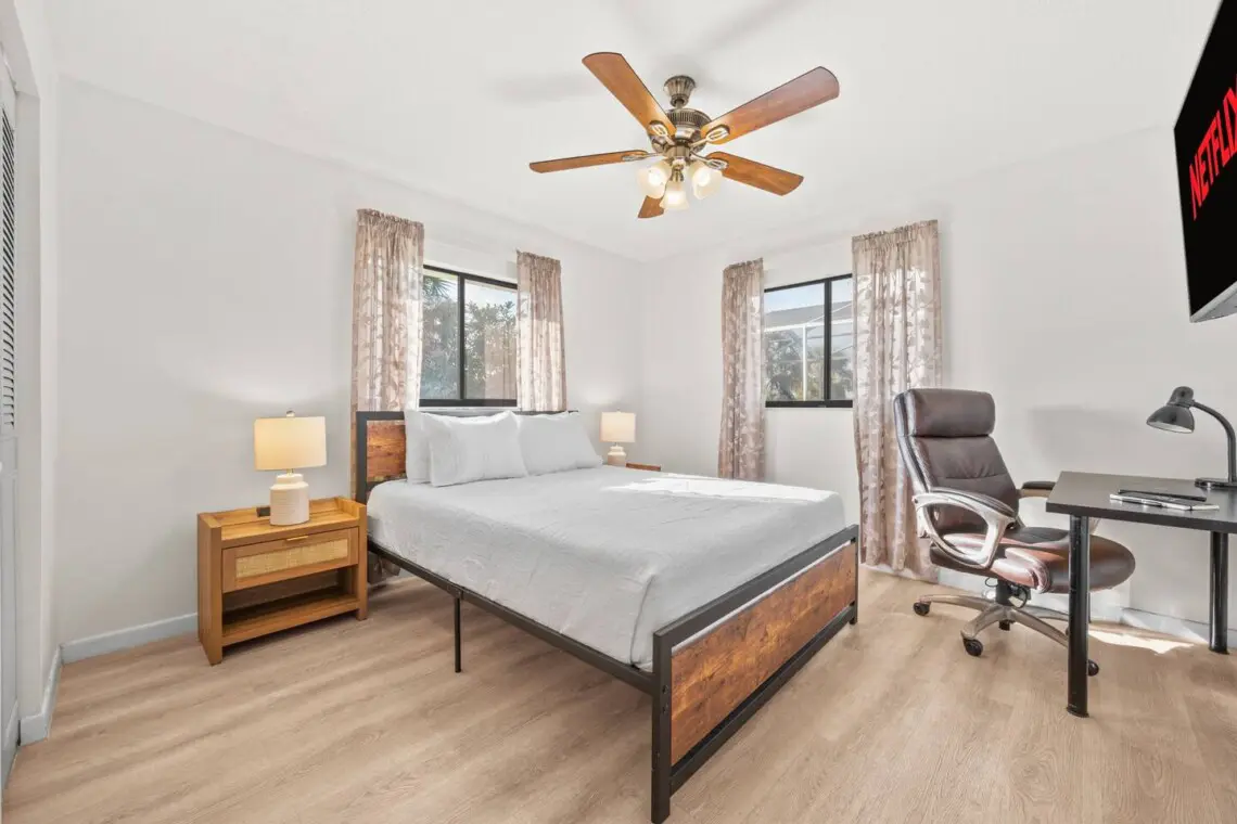 🛏️ Primary bedroom with cozy bedding and modern finishes