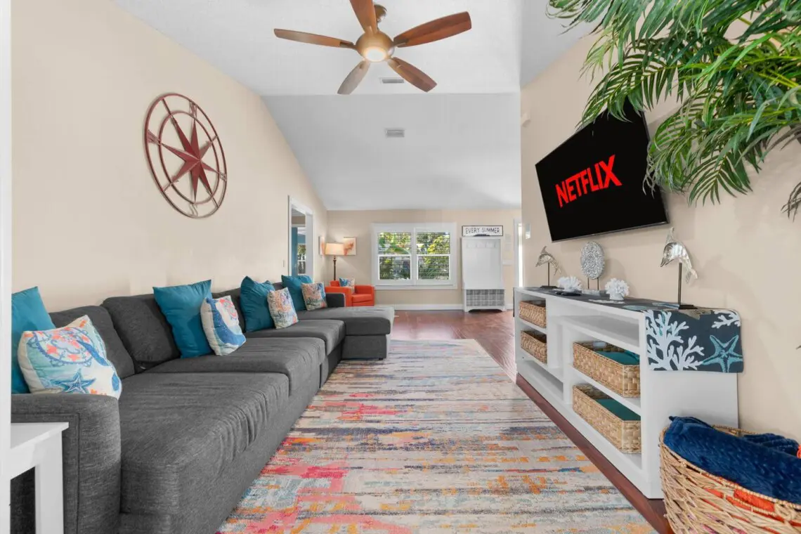 🛋️ Bright open-concept living area with Smart TV and comfortable seating