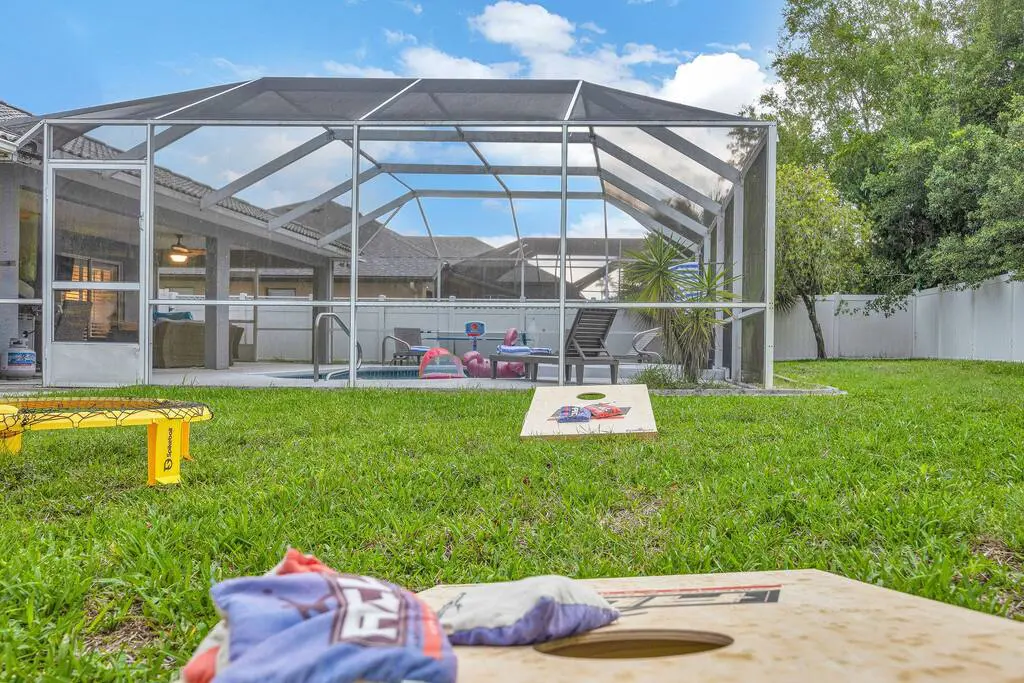 – **Backyard:** The private backyard is all yours to explore and enjoy, featuring a saltwater pool, BBQ grill, and a variety of lawn games.