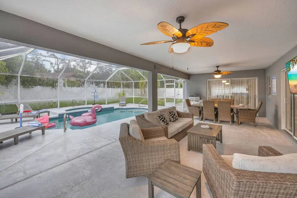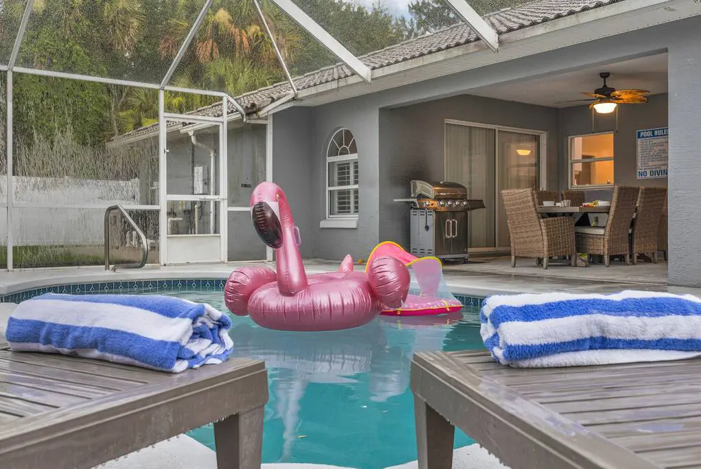 Nestled in a quiet neighborhood in Palm Coast, our home is just minutes away from beautiful beaches, scenic parks, and a variety of dining and shopping options. Whether you’re looking to explore local attractions or simply unwind by the pool, our home offers the perfect base for your vacation.