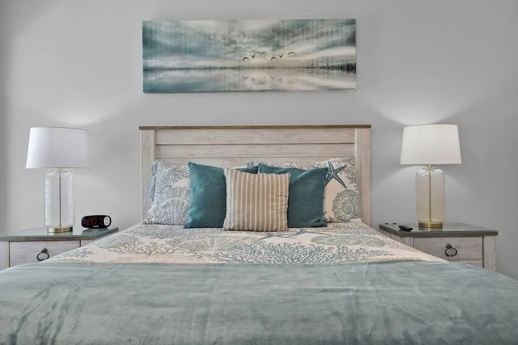 Comfortable Bedrooms: Three beautifully decorated bedrooms provide a restful night’s sleep. The master suite features a king-size bed and an ensuite bathroom, while the other rooms offer a queen bed and a fun bunk bed setup.